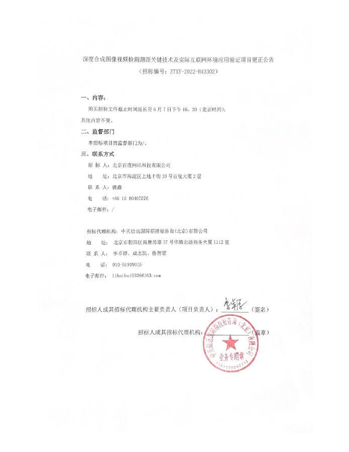 深度合成图像视频检测溯源关键技术及实际互联网环境应用验证项目更正公告