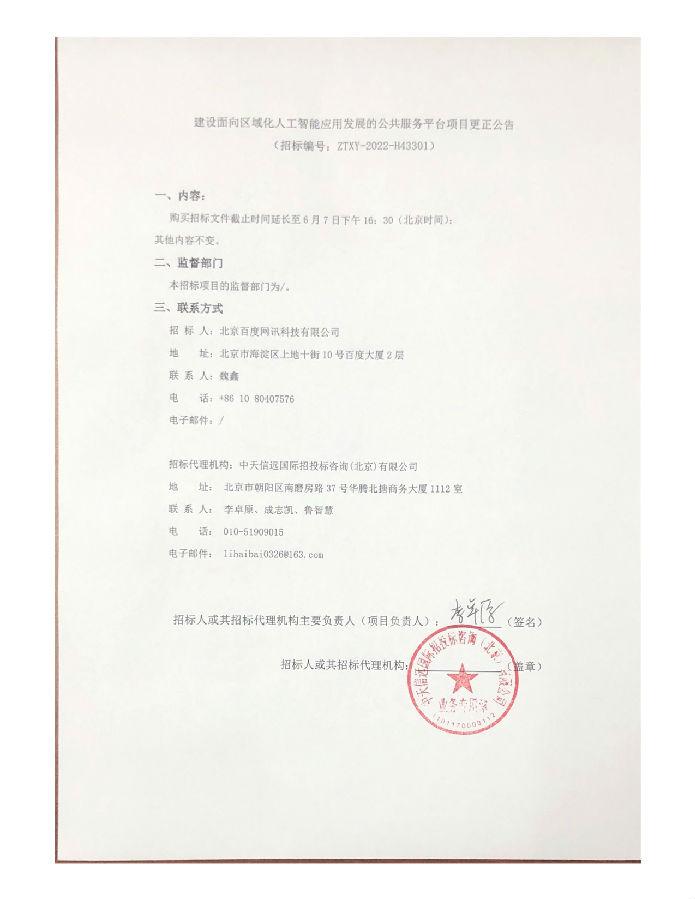 建设面向区域化人工智能应用发展的公共服务平台项目更正公告