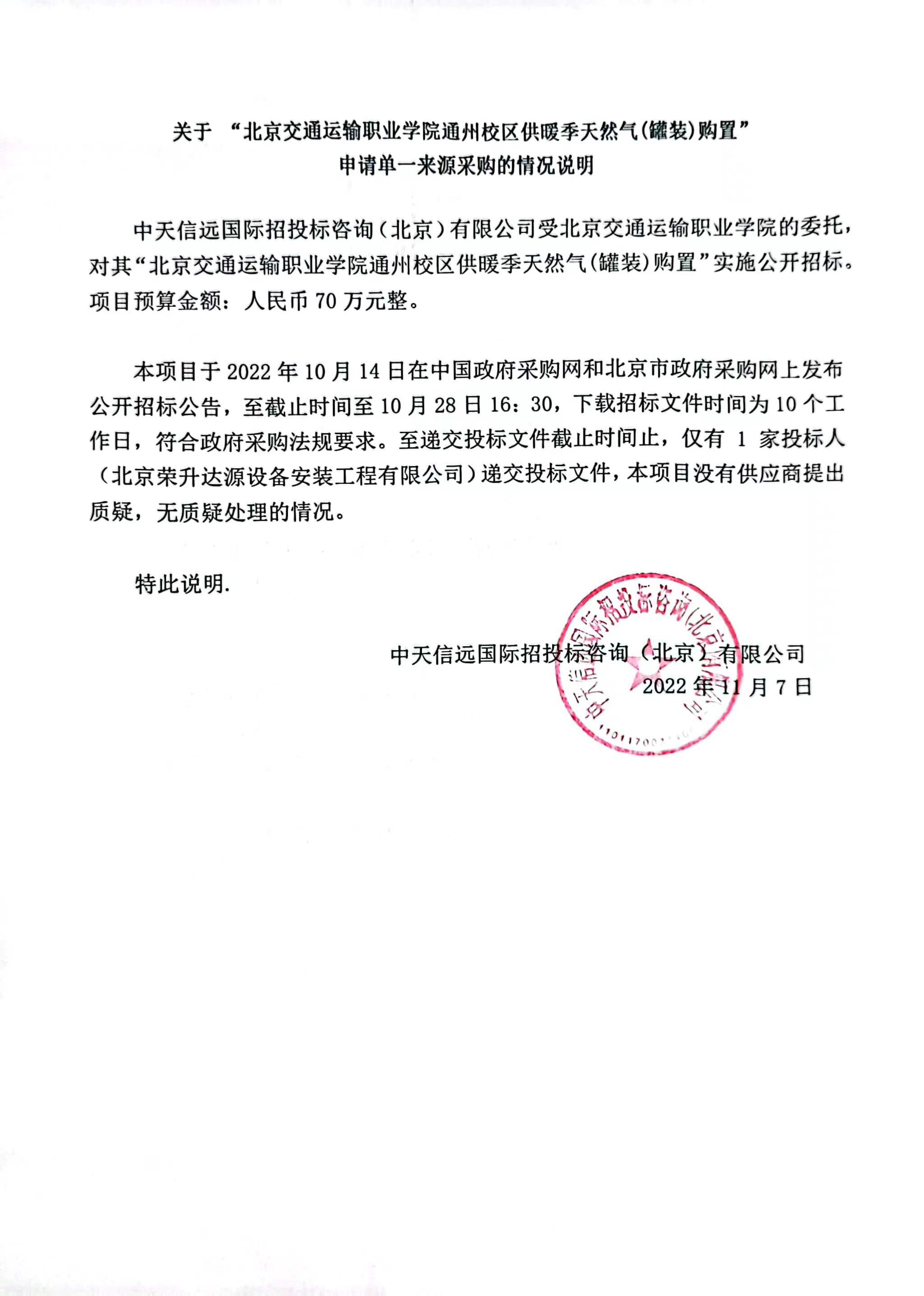 本项目于2022年10月14日在中国政府采购网和北京市政府采购网上发布公开招标公告,下载招标文件截止时间至10月28日16:30,符合政府采购法规要求,至递交投标文件截止时间止,仅有1家投标人(北京荣升达源设备安装工程有限公司)递交投标文件。