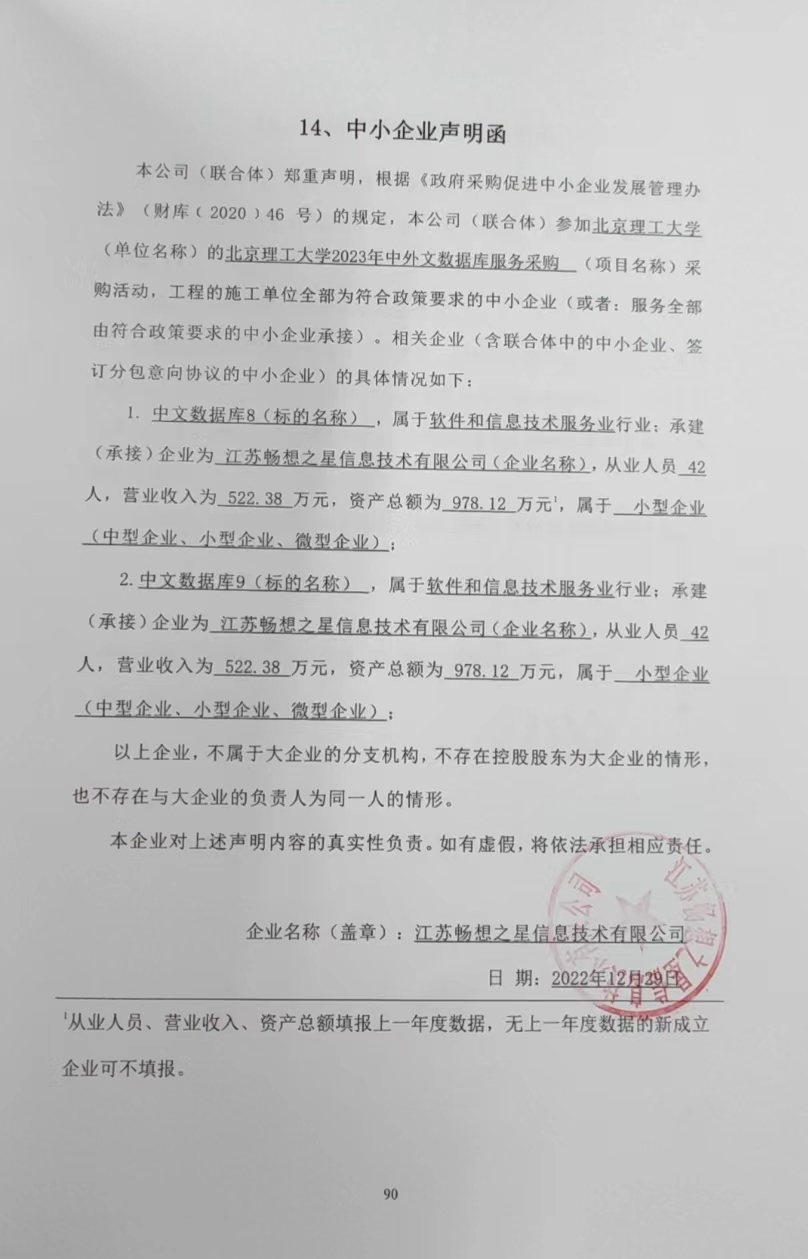 | 23 | 江苏畅想之星信息技术有限公司 | 中文数据库9 | 详见招标文件 | 详见招标文件 | 详见招标文件 | 详见招标文件 |