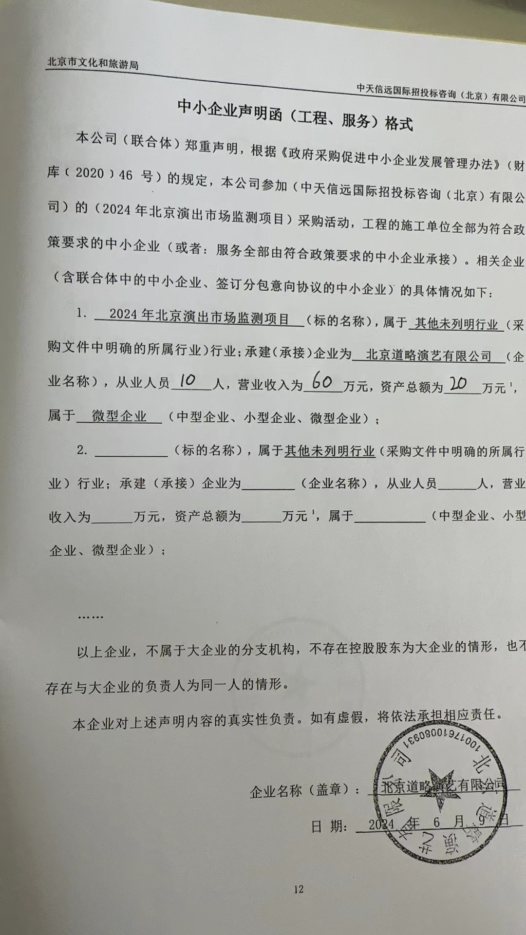 | 1 | 北京道略演艺有限公司 | 2024年北京演出市场监测 | 详见遴选文件 | 详见遴选文件 | 自合同签订生效之日起至2025年5月止。 | 详见遴选文件 |