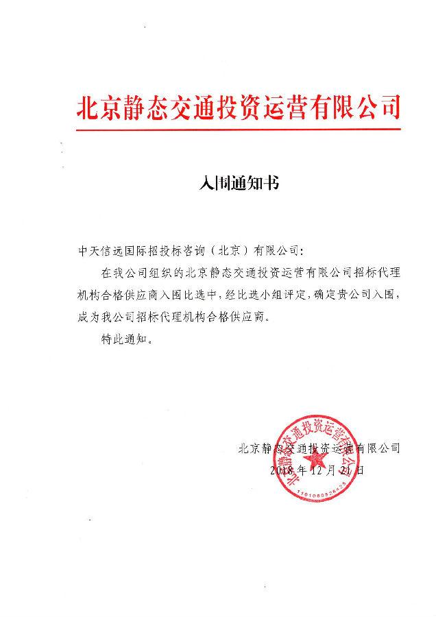 北京静态交通投资运营有限公司入围通知书