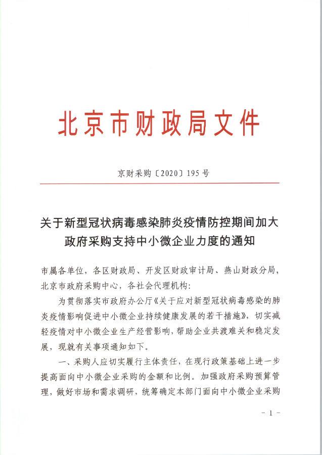 > 关于新型冠状病毒感染肺炎疫情防控期间加大政府采购支持中小微企业力度的通知