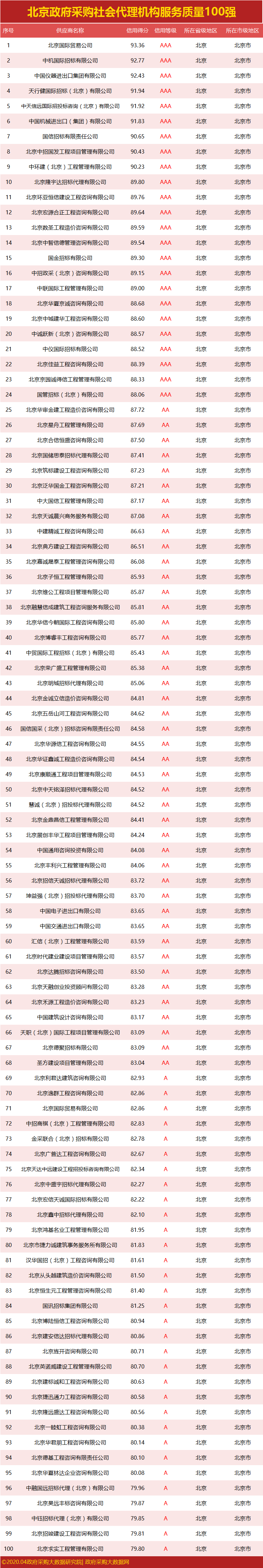 ③政府采购大数据研究院和政府采购大数据网联合发布:北京市政府采购社会代理机构服务质量100强&行业供应商服务质量50强榜单。数据评估区间:2019年04月01日至2020年03月31日。公示时间:2020年04月21日至2020年04月27日。