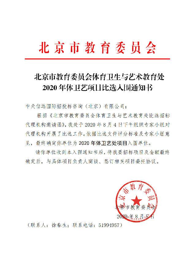 北京市教育委员会体育卫生与艺术教育处2020年体卫艺项目比选入围通知书